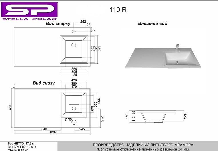Раковина над стиральной машиной Stella Polar Мадлен 110см правая белый SP-00000838 купить
