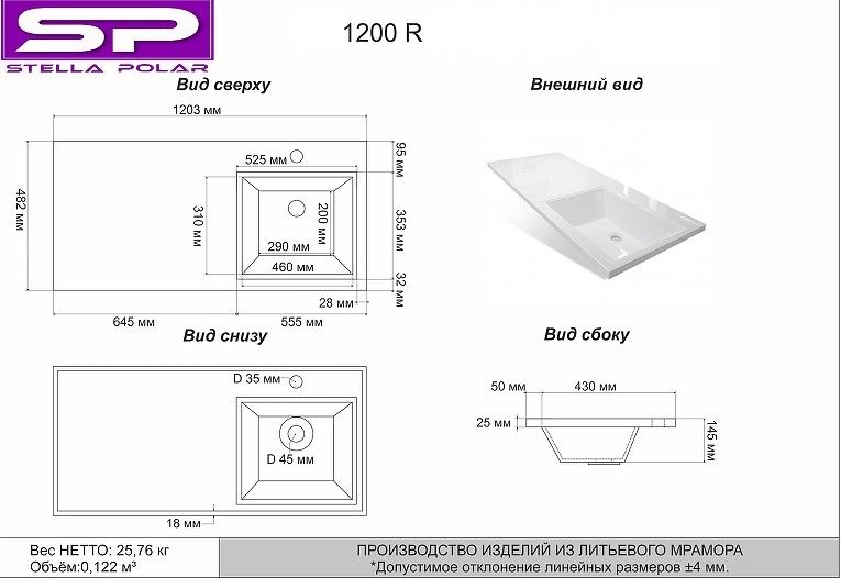 Материал: искусственный мрамор.