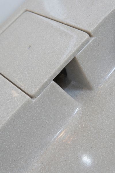 Раковина в ванную комнату для установки над стиральной машинкой бежевого цвета. Крепится на кронштейны, которые входят в комплект поставки. Верхний слой высококачественного гелькоута образует декоративно-защитное покрытие.