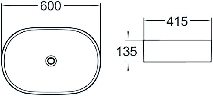 Раковина керамическая 60 х 41.5 х 135 см, накладная без перелива, дополнит современные интерьеры ванных комнат в различных цветовых гаммах