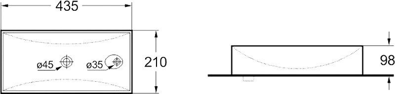 • Отверстие под смеситель: справа.