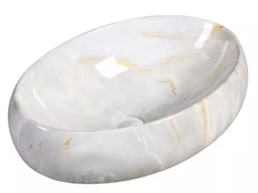 Раковина накладная SantiLine SL-7028 47см светло-серый мрамор купить