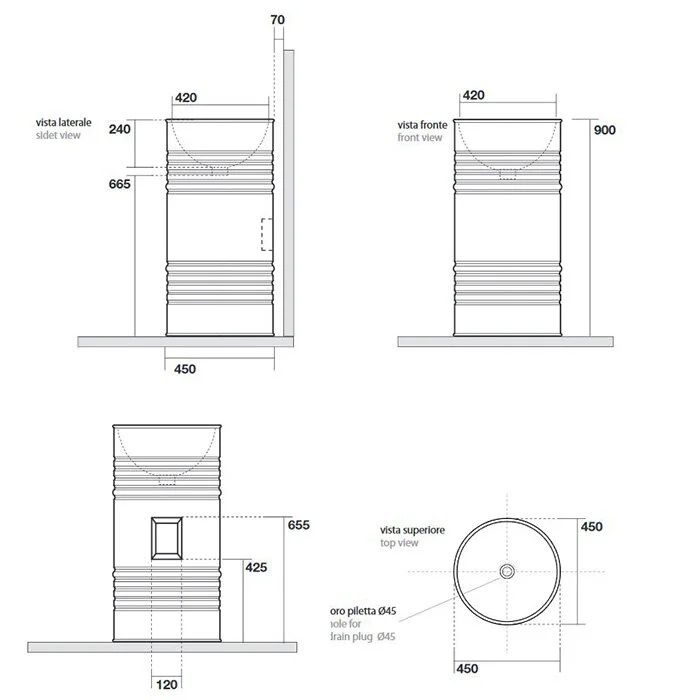 Раковина напольная Kerasan Artwork Barrel 474331 45см слив в стену чёрный матовый купить