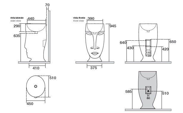 Раковина напольная Kerasan Artwork Moloco, с отверстием для слива в стену, цвет белый, 474001Раковина свободностоящая "MOLOCO", с отверстием для слива в стену: