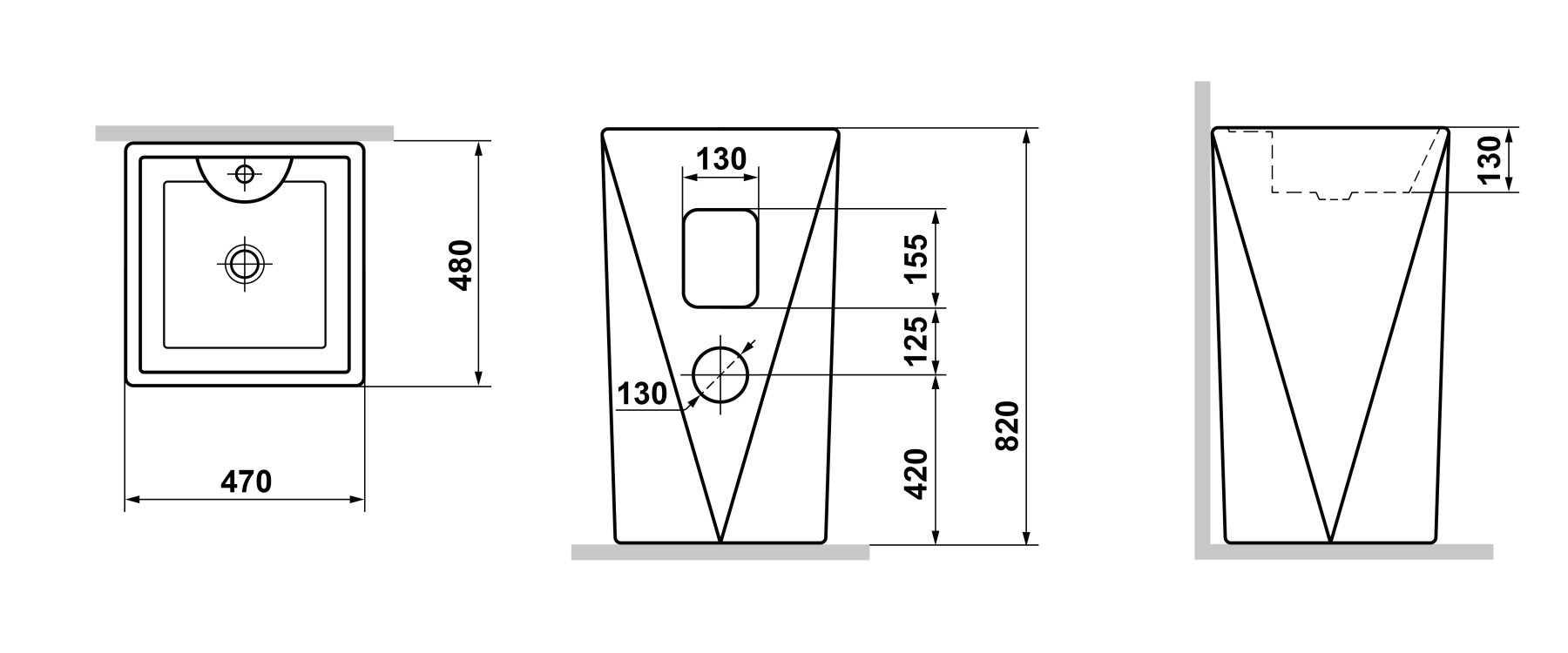 Цвет белый. Раковина с отверстием под смеситель; с отверстием перелива.