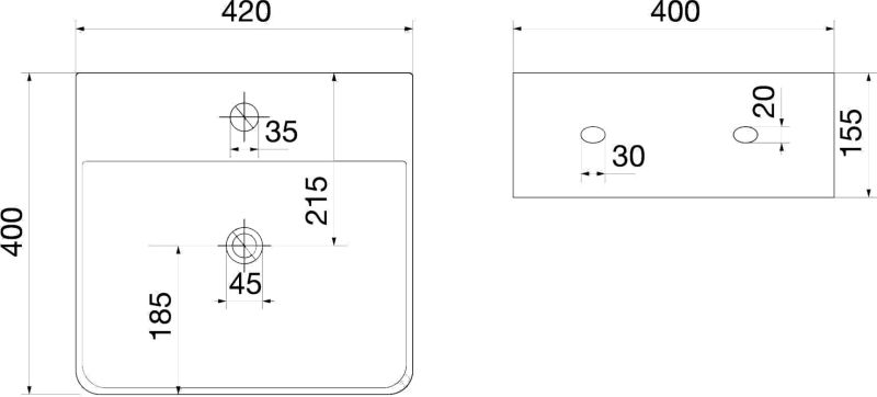 - Имеет 1 намеченное отверстие под смеситель
