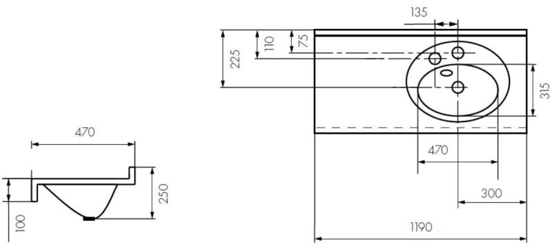 • Отверстия под смеситель: