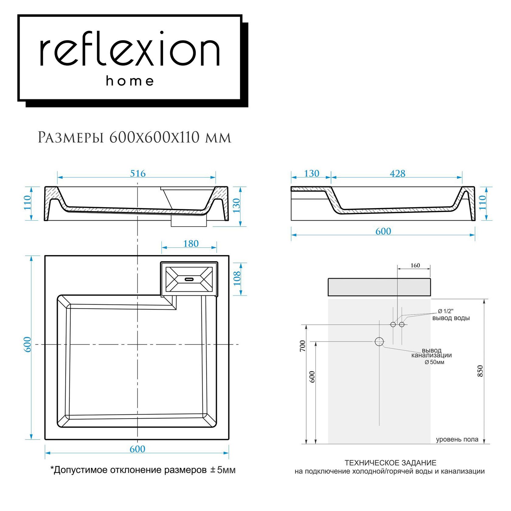 Раковина Reflexion Sigma RX6060SI белая 60x60 Подробнее