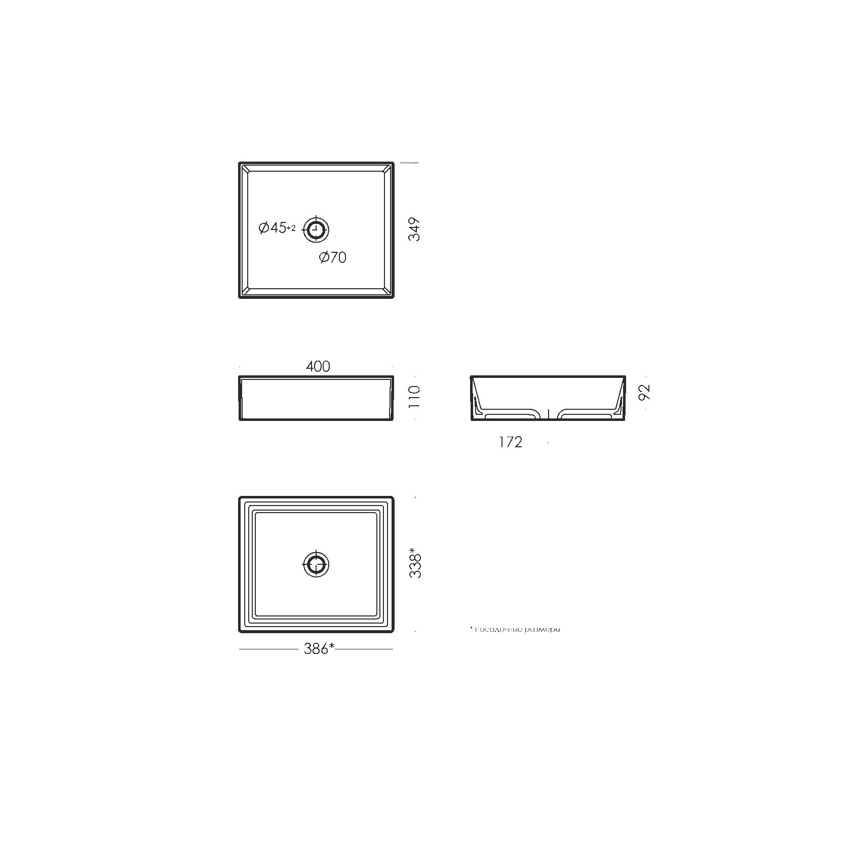 • Отверстия под смеситель: