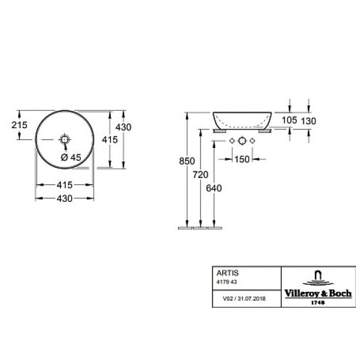 Раковина Villeroy Boch Artis 417943BCW4 43х43 см, Sencha зеленый чай купить