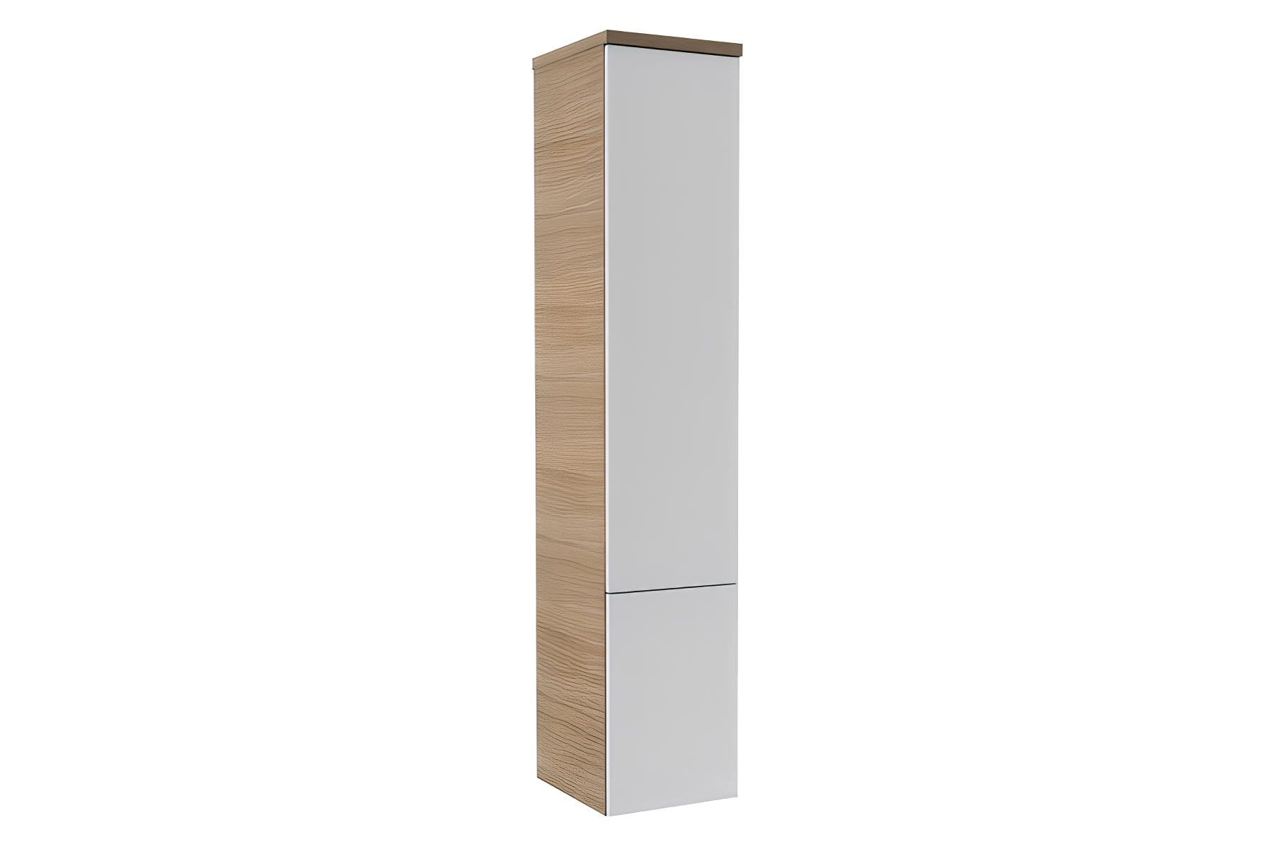 Высокий шкаф ванной комнаты, которая вмещает все, что нужно в ванной комнате. Стеклянные полки для современного вида и легкого обслуживания. Благодаря ротатабельности дверь шкафа может быть слева и справа.