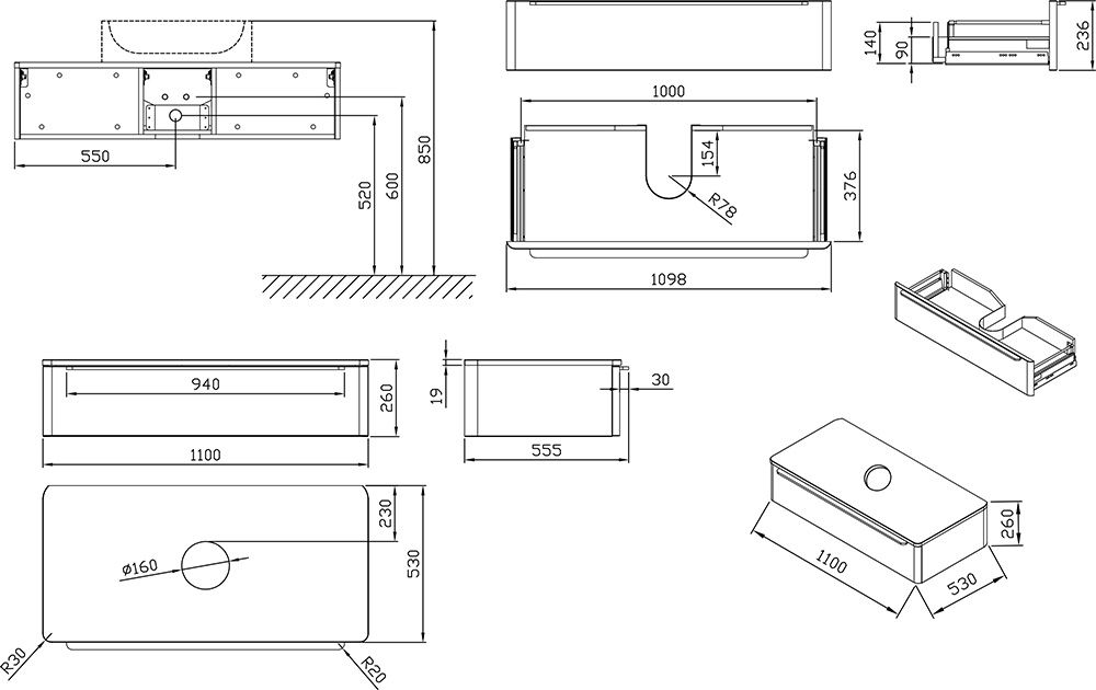 - • Форма мебели: прямоугольная