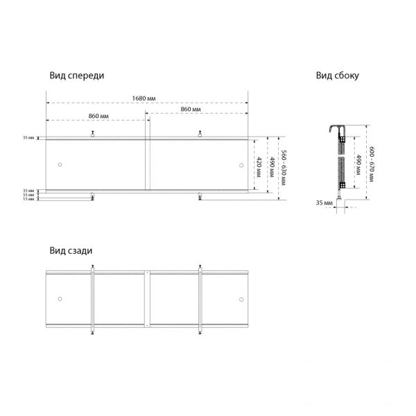 Раздвижной экран для ванны Triton Щ0000061956 168 см