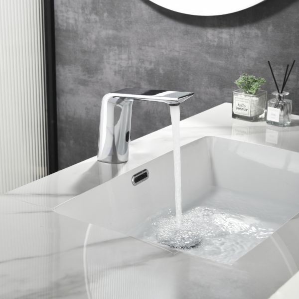 Смеситель для раковины датского производителя Black&White. Изделие изготовлено из сантехнической латуни – данный материал безопасен для здоровья и выдерживает высокое давление. Сверху корпус покрыт хромоникелевым покрытием, которое не корродирует. Открытие воды происходит с помощью инфракрасного датчика, который работает на аккумуляторе постоянного тока. Данное решение гигиенично и экономит воду, особенно в общественных помещениях. Настройка температуры вынесена на ручку расположенную справа от снования. Комбинация округлого основания и плоского излива гармонично вольется в современные интерьеры ванной комнаты.