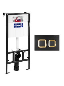 SET Инсталляция Sava Fix Slim + клавиша смыва черный матовый + золото глянец квадр. SMART