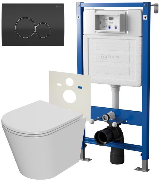 Сет: Система инсталляции Point Элемент для подвесного унитаза PN45120 + Клавиша смыва для инсталляции Point Виктория, черная/хром, PN44061BC + Унитаз подвесной Point Виктория безободковый, сиденье микролифт PN41061