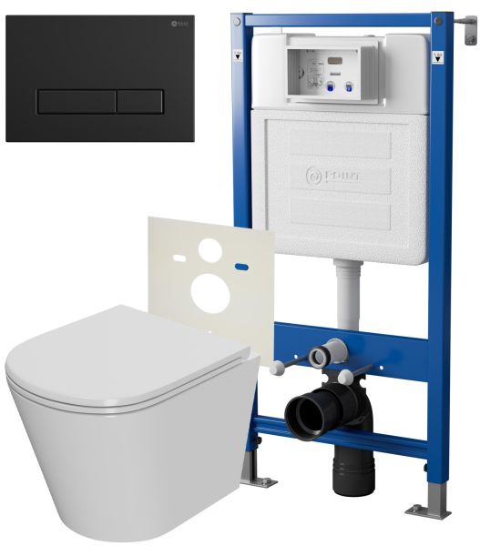 Сет: Система инсталляции Point Элемент для подвесного унитаза PN45120 + Клавиша смыва для инсталляции Point Меркурий, черная матовая, PN44831BM + Унитаз подвесной Point Виктория безободковый, сиденье микролифт PN41061