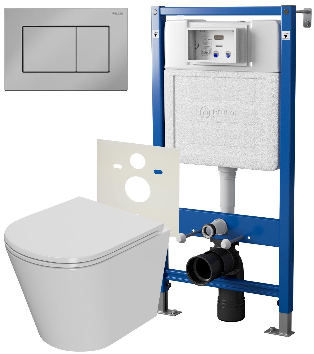 Сет: Система инсталляции Point Элемент для подвесного унитаза PN45120 + Клавиша смыва для инсталляции Point Ника, хром, PN44081C + Унитаз подвесной Point Виктория безободковый, сиденье микролифт PN41061