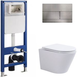 Сет Sintesi SIN-CCI-SMP-101,SIN-FB-DSS-507,SIN-TS-SLR-181: инсталляция кнопка смыва нержавеющая сталь унитаз Essler белый крышка-сиденье белая