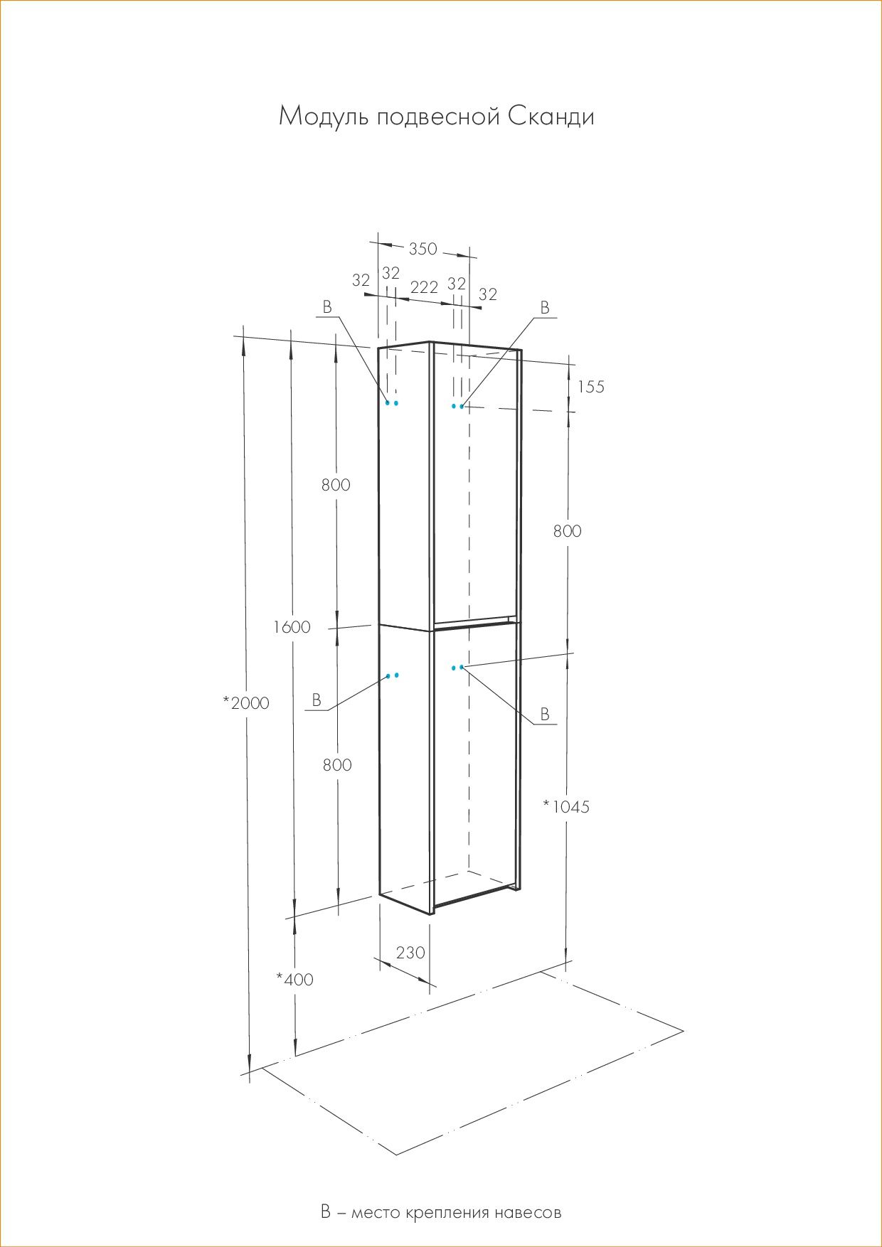 В качестве дополнительного места для хранения к тумбе Сканди можно выбрать подвесной шкафчик Сканди с белым глянцевым фасадом и корпусом в декоре тумбы. Комплект из двух подвесных шкафчиков составляет полноценную шкаф-колонну.