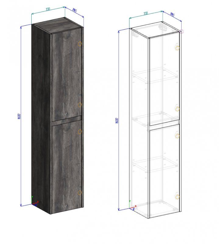 Система хранения: две распашные двери с доводчиками, две полки внутри