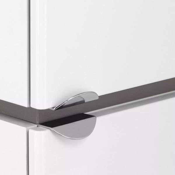 Подвесная шкаф-колонна Скай сочетает в себе ультра-белые глянцевые фасады с декоративной вставкой в цвете "серый кашемир". Чистоту линий фасадов подчеркивают эргономичные хромированные ручки. Корпус модели выполнен из высококачественной влагостойкой ЛДСП, фасады - из МДФ в пленке "белый глянец", что позволяет защитить поверхность от внешних воздействий. Петли данного шкафа расположены справа и оснащены интегрированным механизмом плавного довода, который обеспечивает мягкое и бесшумное закрывание дверок.