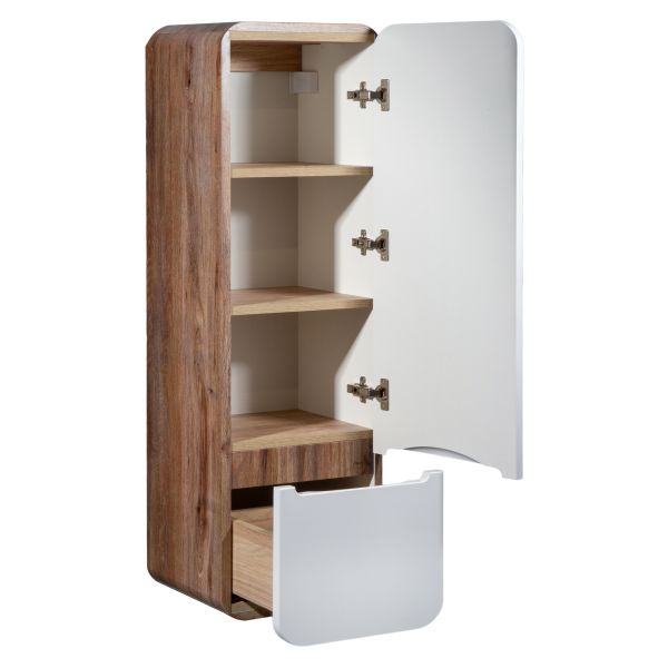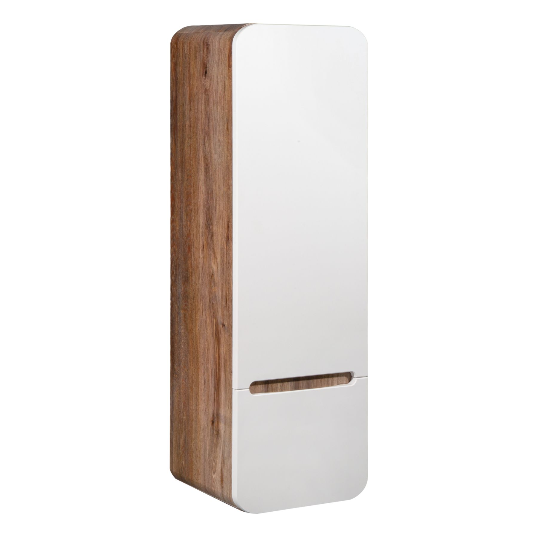 Шкаф-пенал для ванной RUNO НИЦЦА - сочетание безупречного стиля и современных тенденций в дизайнерском оформлении ванной комнаты. Пенал с обтекаемыми формами станет прекрасным дополнением в интерьере Вашей ванной комнаты, выполнен в сочетании корпуса с текстурой темного дерева с белыми фасадами. Плавные линии в сочетании с фактурным покрытием сделают обстановку вашей ванной максимально теплой и уютной. Придаст изысканность и завершенность домашней обстановке. Шкаф оснащен одной распашной дверцей правого открывания и выдвижным ящиком с бесшумными шариковыми направляющими полного выдвижения, навесами для крепления к стене. Внутри шкафа две внутренние полки. Функцию ручки выполняет декоративный вырез. Фасады шкафа-пенала изготовлены из МДФ. Мебель для ванной RUNO - красота и практичность в мелочах! Цвет товара на мониторе может отличаться от реальных цветов, это зависит от настроек цветового профиля и разрешения Вашего монитора или мобильного устройства.