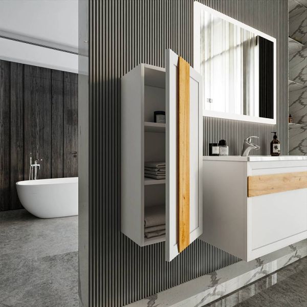 Шкаф для ванной комнаты – это стильное решение, которое гармонично вписывается в современный интерьер. Его элегантные линии и аккуратные формы создают атмосферу чистоты и порядка, что особенно важно в таком интимном пространстве. Изготовленный из качественных влагостойких материалов, этот шкаф обеспечивает долговечность и надежность, даже в условиях повышенной влажности.