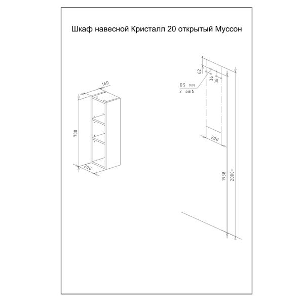 Шкаф навесной открытый Бриклаер Кристалл 4627125417122 20 см дуб гранж песочный купить