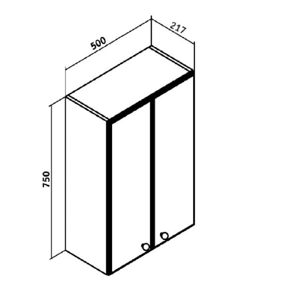 Шкаф навесной с двумя распашными дверками. Внутри - две встроенные полки. Петли со встроенным доводчиком, ручки - 2шт, навесы 2шт.