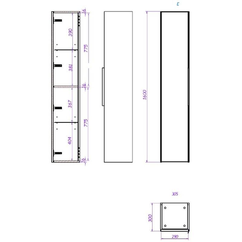 Пенал LA FENICE SIMPLA 30,5 FNC-05-SIM-B-30 (подвесной, 30,5*30*160, белый матовый), шт