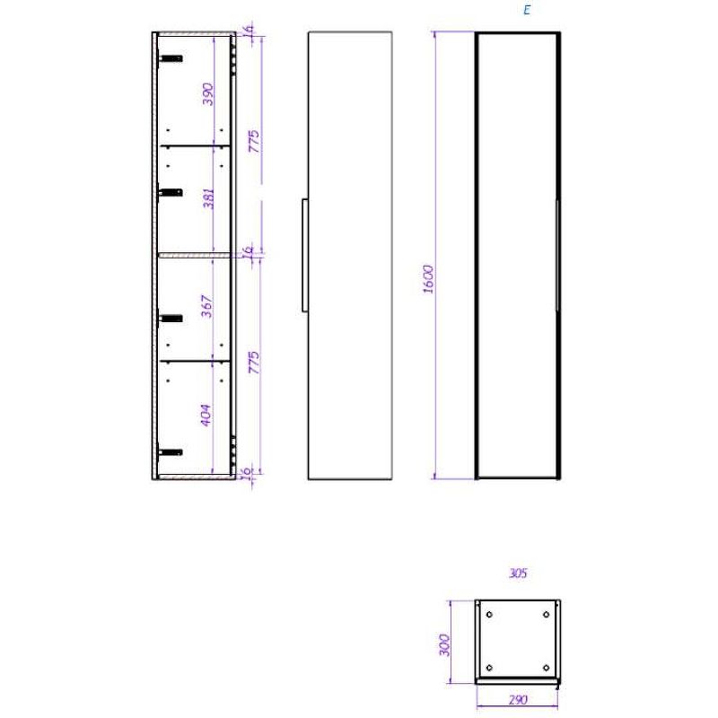 Пенал LA FENICE SIMPLA 30,5 FNC-05-SIM-BG-30 (подвесной, 30,5*30*160, синий матовый), шт