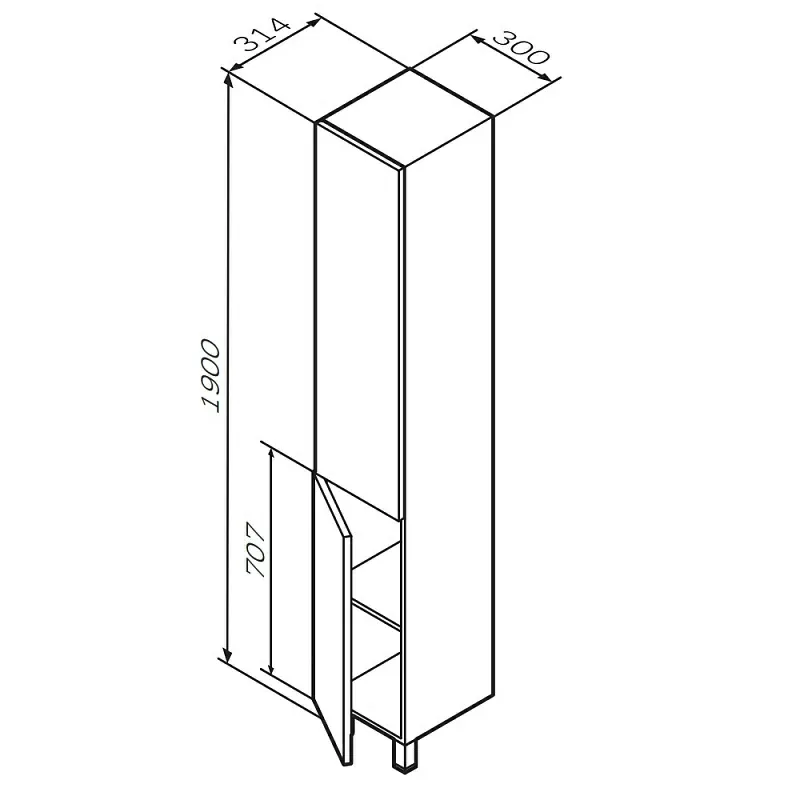 пять полочек в шкафу-пенале оптимизируют пространство для хранения ванных принадлежностей и моющих средств.