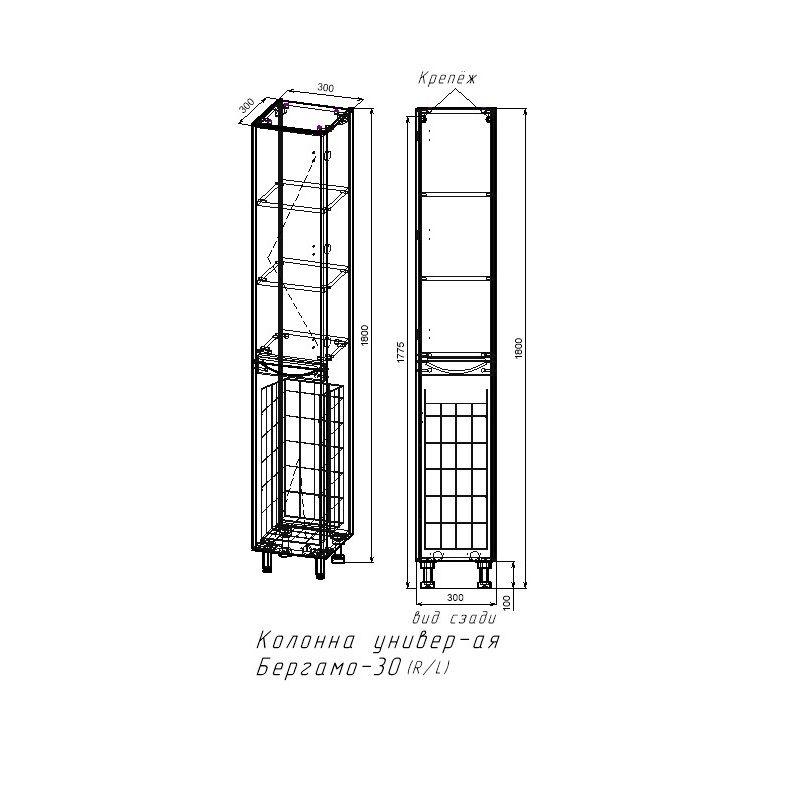 Шкаф-пенал Style Line El Fante Бергамо Люкс антискрейтч Plus, 30 см, напольный, с корзиной, белый, петли справа/слеваОсновные характеристики:Шкаф-пенал с корзиной