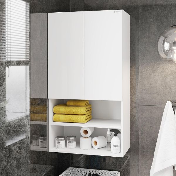 Навесной шкаф для ванной комнаты Onika Маркус Нова 60, благодаря лаконичной прямоугольной форме и универсальному белому цвету, подойдет к любому интерьеру ванной комнаты и не займет много места.