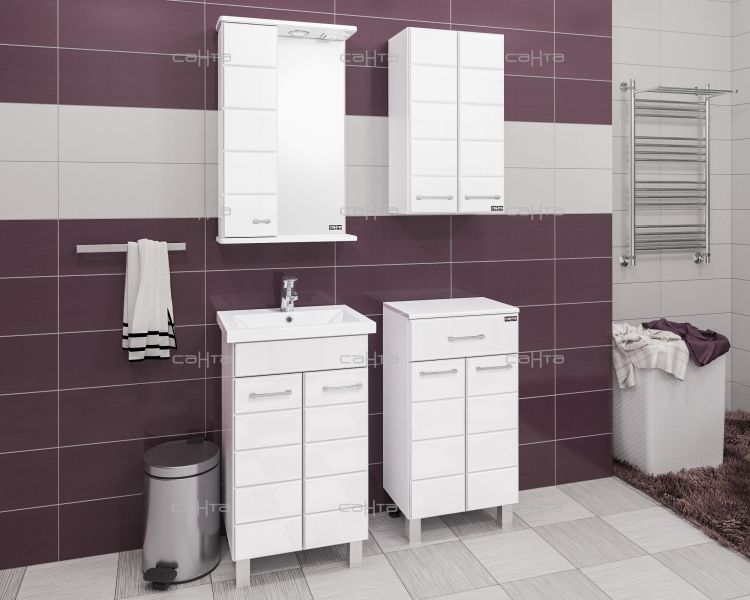 Шкаф СанТа отлично впишется в дизайн любой ванной комнаты, будь то компактная ванная в многоэтажном доме или большой санузел в загородном коттедже.Компания СанТа использует при производстве высококачественные водоотталкивающие материалы (ВЛДСП), соответствующие всем необходимым требованиям безопасности. Коллекция выполнена в эксклюзивном дизайнерском решении в лучших традициях современного стиля. Белый, основной цвет исполнения СанТа, отлично подходящий большинству дизайнерских решений. Шкаф предусматривает удобную и вместительную систему хранения, состоящую из дверей, ящиков. Качественные доводчики позволяют обеспечить мягкое и тихое закрывание.Россия родина бренда СанТа, вся продукция производится со строгим соблюдением всех стандартов, благодаря чему можно быть абсолютно уверенным в надежности и высоком качестве. Шкаф СанТа создаст уют и комфорт в любом дизайнерском решении, и ванная комната обретет неповторимый элемент интерьера.