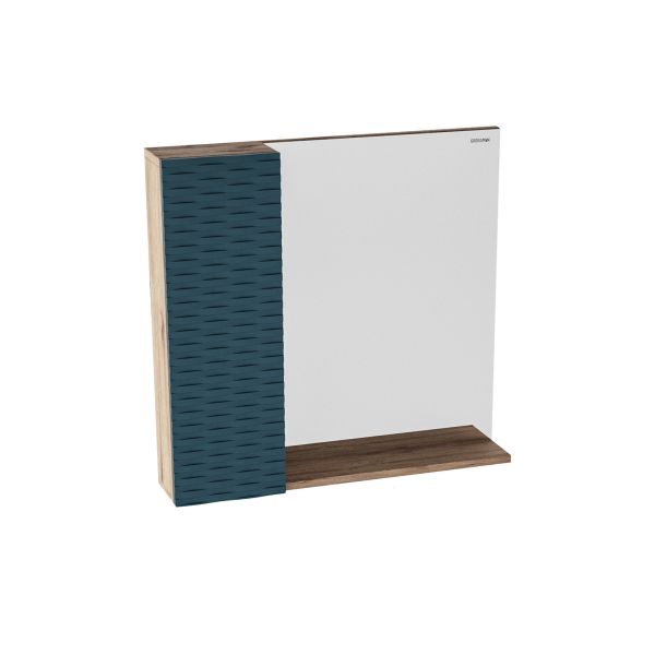 Шкаф-зеркало Альба 80 см отражает современные тенденции в дизайне мебели для ванных комнат: матовая пленка в цвете Бриз с 3D рисунком безупречно сочетается с текстурой под дерево, отсутствие лишних деталей.