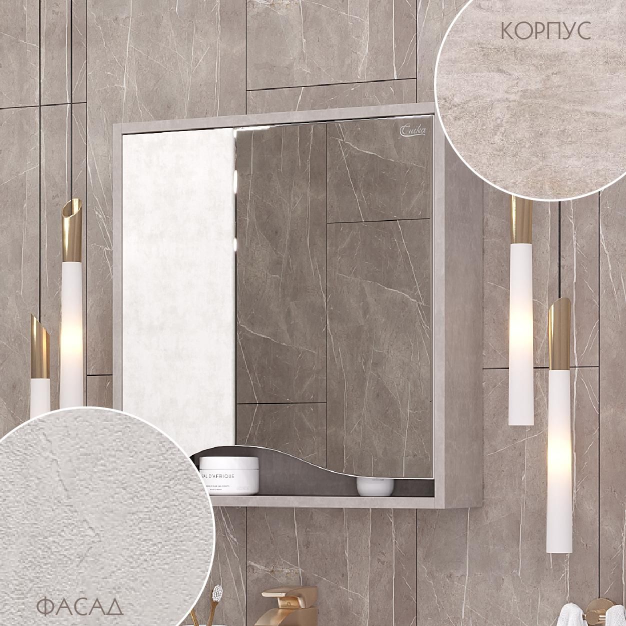 Зеркальный шкаф Onika БРЕНДОН 60 поможет создать особенную атмосферу ванной комнаты: текстуры камня и бетона гармонично дополняют друг-друга, создавая сдержанный выразительный акцент в интерьере.