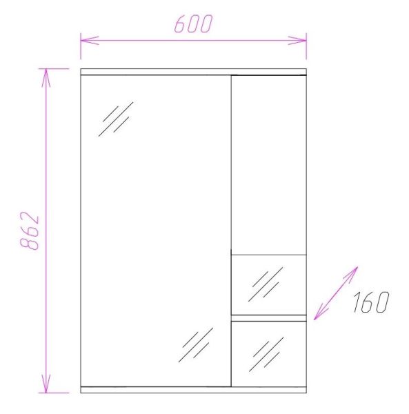 Корпус шкафа-зеркала выполнен из ЛДСП, фасад - из ЛМДФ в пленке, устойчивых к механическим воздействиям, перепадам температур и высокой влажности.