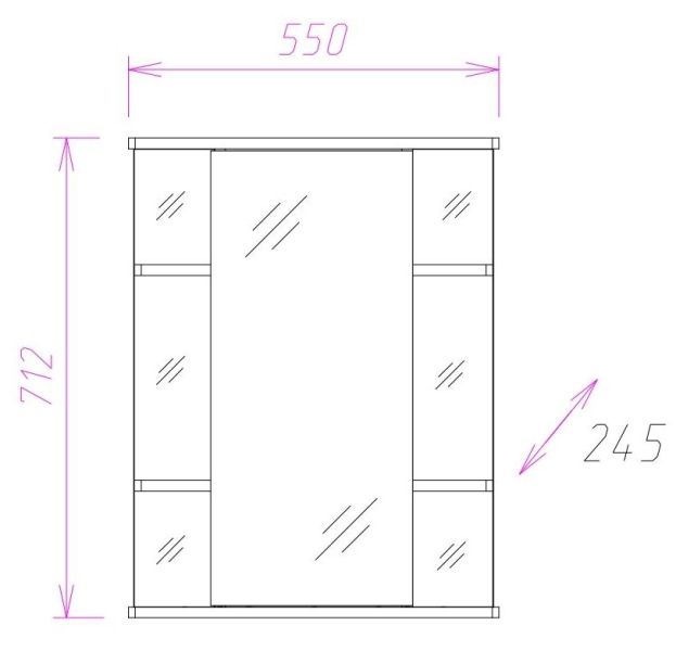 Корпус шкафа-зеркала выполнен из ЛДСП, фасад - из ЛДСП и ЛМДФ в пленке, устойчивых к механическим воздействиям, перепадам температур и высокой влажности.