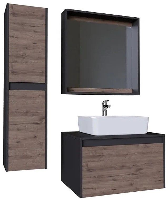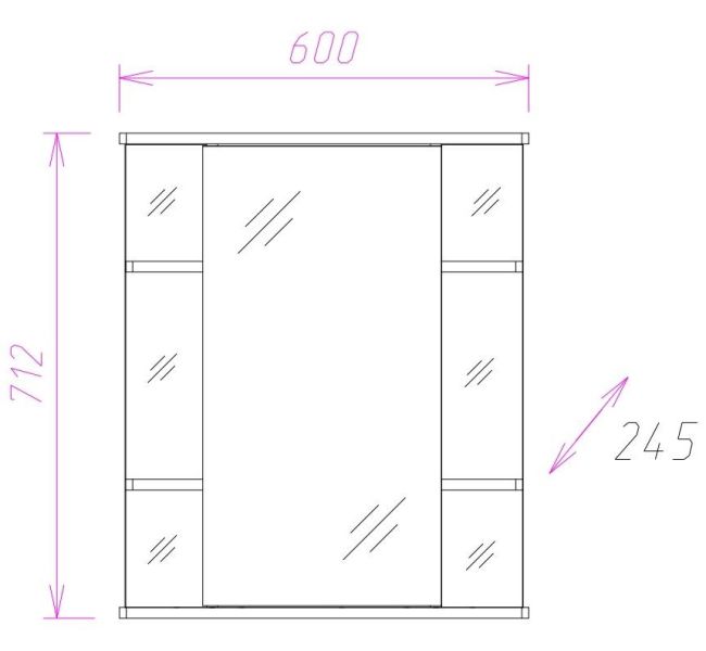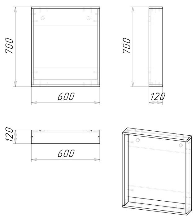 Корпус шкафа-зеркала выполнен из ЛДСП, фасад - из ЛДСП и ЛМДФ в пленке, устойчивых к механическим воздействиям, перепадам температур и высокой влажности.