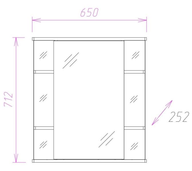Корпус шкафа-зеркала выполнен из ЛДСП, фасад - из ЛДСП и ЛМДФ в пленке, устойчивых к механическим воздействиям, перепадам температур и высокой влажности.
