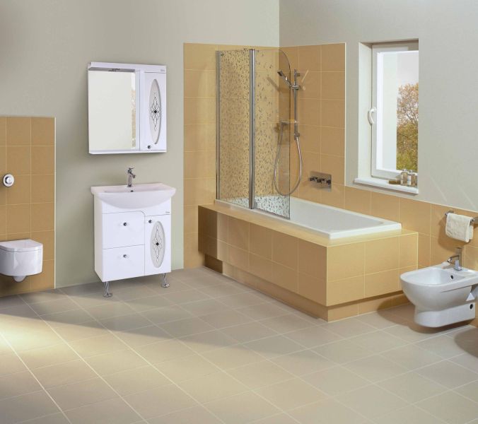Белоснежный цвет фасада в сочетании со вставками из матового стекла и хромированными ручками необычной формы придадут ванной комнате атмосферу уюта и благоустроенности, а большое пространство для хранения поможет удобно разместить все необходимое.