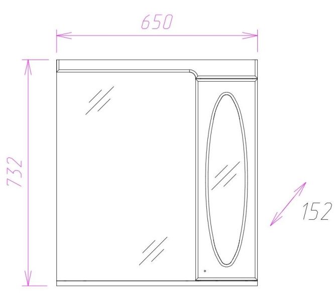 Шкаф-зеркало с подсветкой Onika Кристи 206536 правый 65см белый купить