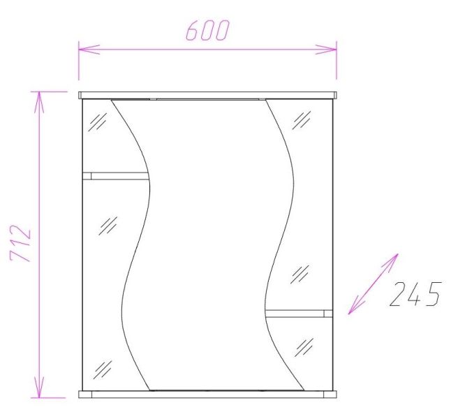 Навесной зеркальный шкаф ЛИЛИЯ 60 способен преобразить ванную комнату: эстетика изогнутой линии воплощается в мягкой волнообразной форме дверцы и исполняет роль основного выразительного элемента для интерьера помещения.