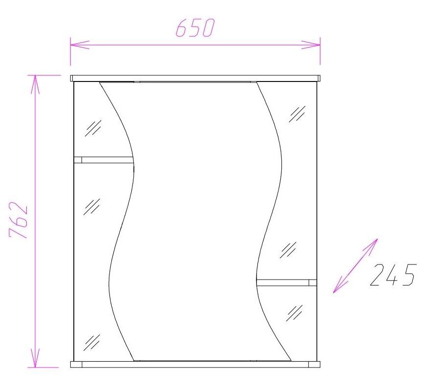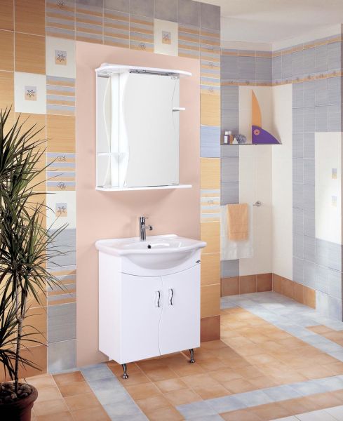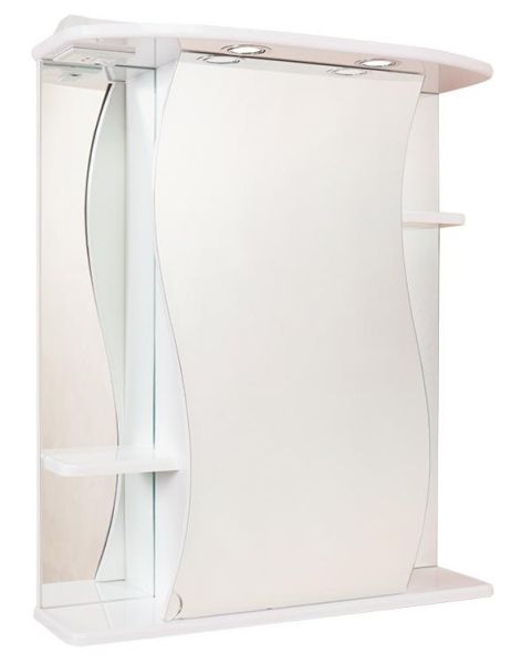 Навесной зеркальный шкаф ЛИЛИЯ 65 способен преобразить ванную комнату: эстетика изогнутой линии воплощается в мягкой волнообразной форме дверцы и исполняет роль основного выразительного элемента для интерьера помещения.