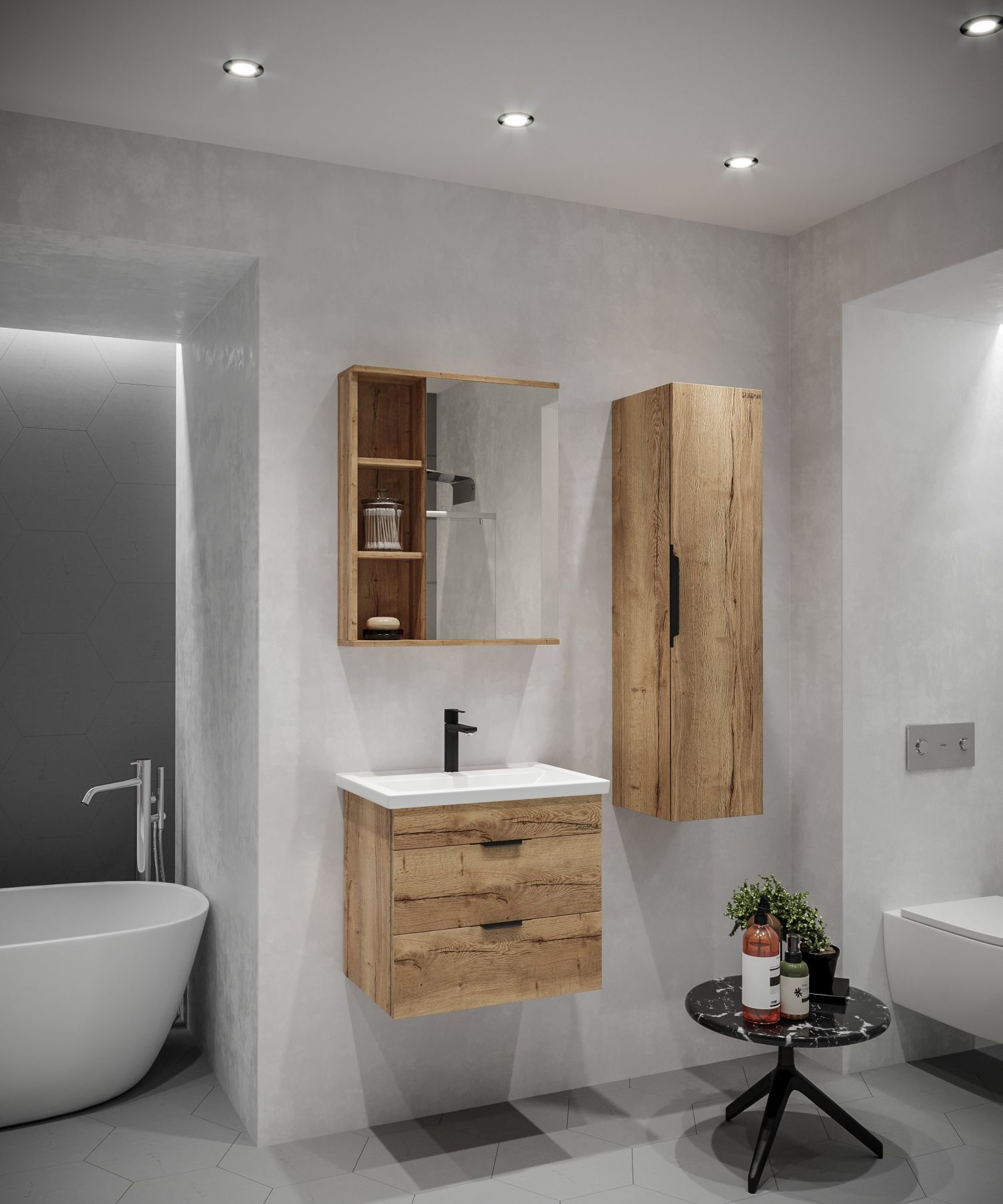 Корпус шкафа-зеркала выполнен из ЛДСП, фасад - из ЛДСП и ЛМДФ в пленке, устойчивых к механическим воздействиям, перепадам температур и высокой влажности.