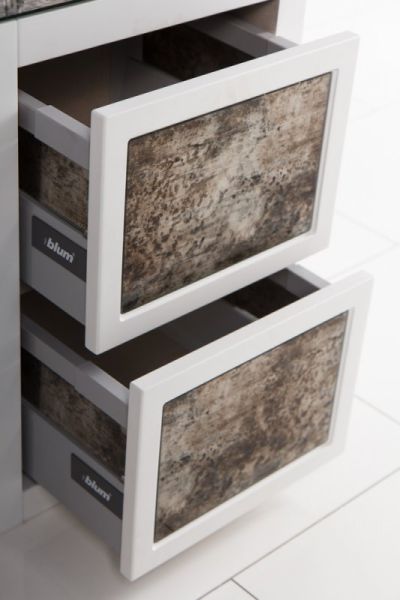 Шкафчик с двумя выдвижными ящиками, совместимый с базой под раковину, корпус белый, вариант отделки: Gotham city