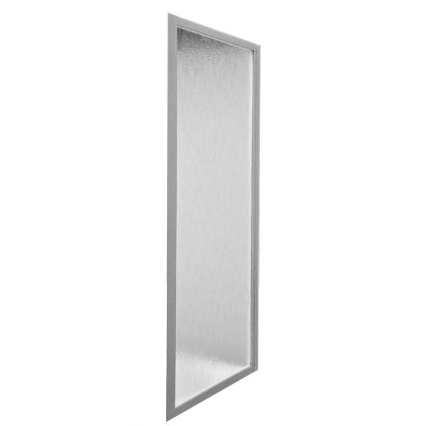 Боковая стенка как дополнительный элемент шторки для ванны изготовлена из алюминиевого профиля, окрашенного порошковой краской, с витражами из закаленного безопасного стекла с фактурой Грейп. Цвет профиля: белый.