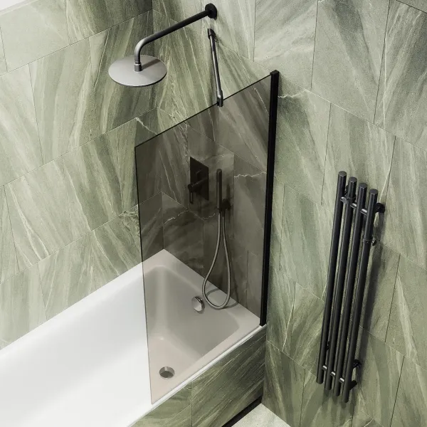 Монтаж осуществляется с помощью алюминиевого профиля, что обеспечивает надежность крепления и безопасность использования стеклянной перегородки для ванной. Также, шторка оснащена специальным уплотнителем, который предотвращает попадание воды на пол ванной комнаты. Закаленное стекло, цвет Бронза, толщина 8 мм 1400х400 мм - 1 шт.